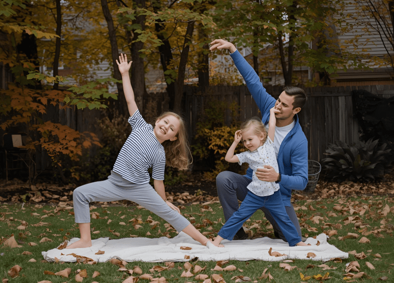 My daughter loves this activity, especially when we match our movements to the sound of leaves crunching or wind blowing outside. We often end with a “freeze pose” where we hold our favorite position and take a few deep breaths — it’s simple but so grounding for both of us.